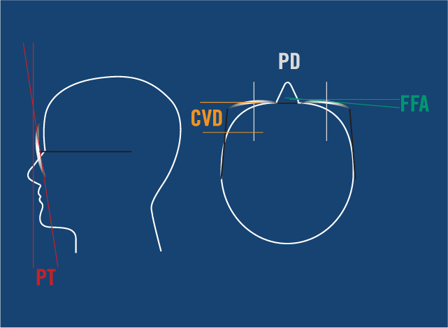 Each face is unique, so the fit of the frame is also unique. Individual Position of Wear provides the best vision over the whole lens independent of the frame chosen or the individual face physiognomy & significantly reduced swimming effect. It can be described precisely by the four parameters of interpupillary distance (PD), pantoscopic tilt (PT), face form angle (FFA) and corneal vertex distance (CVD).