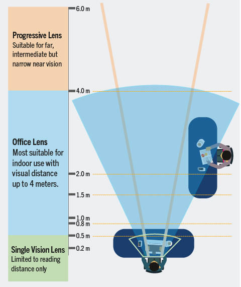 NOTE: The recommendations above are intended as general guidelines. Actual lens needs may vary depending on individual visual requirements, workspace layout, and specific tasks performed.