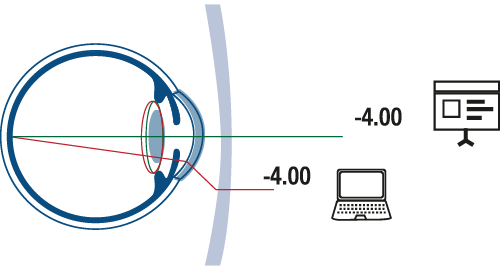A wide horizontal visual field with smooth peripheral defocus function combined with improved near vision comfort.