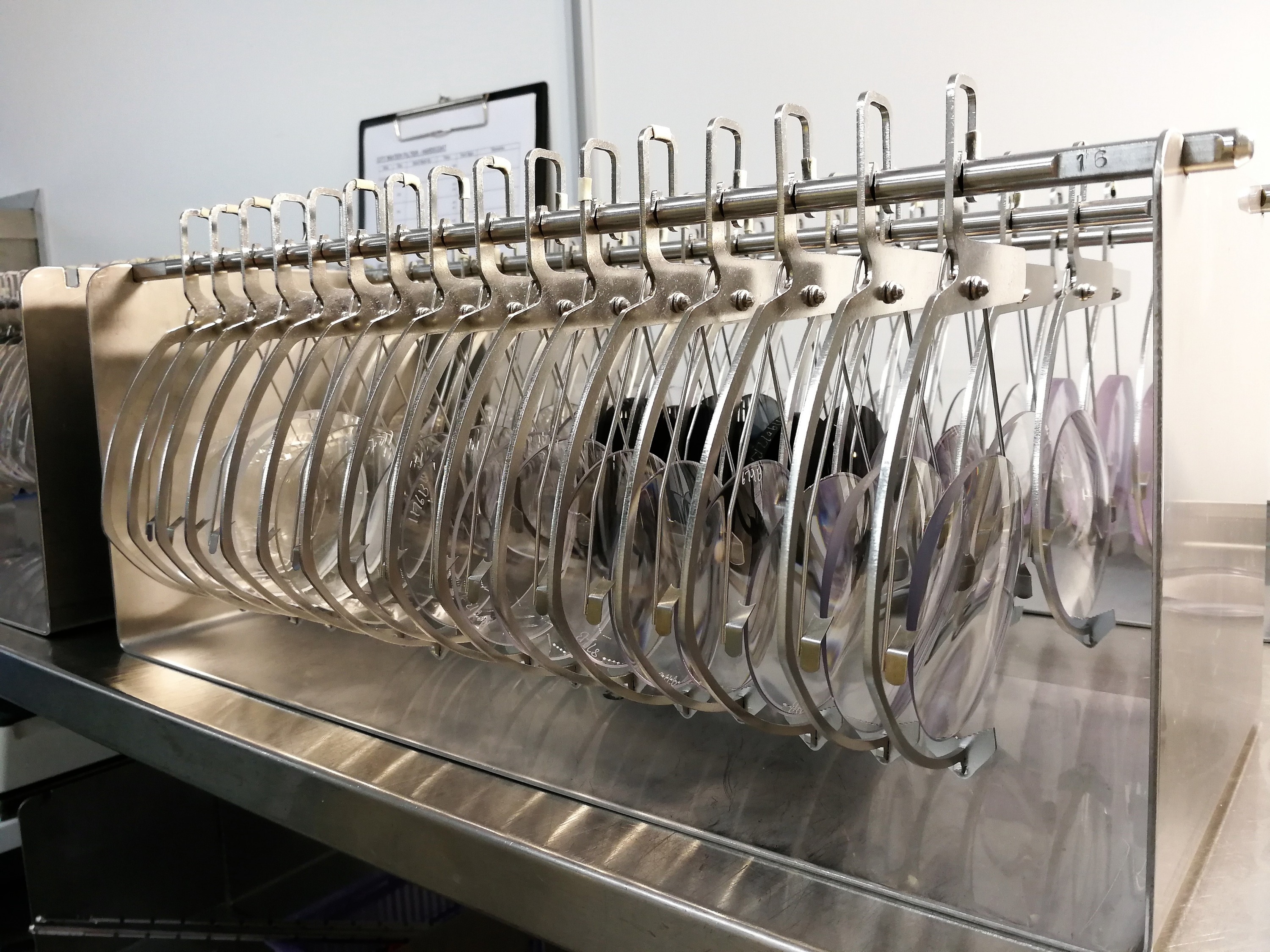 Hard coating or scratch resistant coating provide lenses with durability and increased longevity. A high quality thermally cured hard coat provides the best scratch resistance and provides for the most durable ingredient for an AR coating application. Plastic lens materials scratch easily than glass materials, and therefore benefit greatly with application of a durable hard coat.